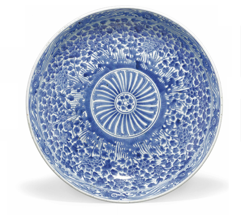 Bát trắng-xanh to, vẽ phượng thòi Minh, tk 17
