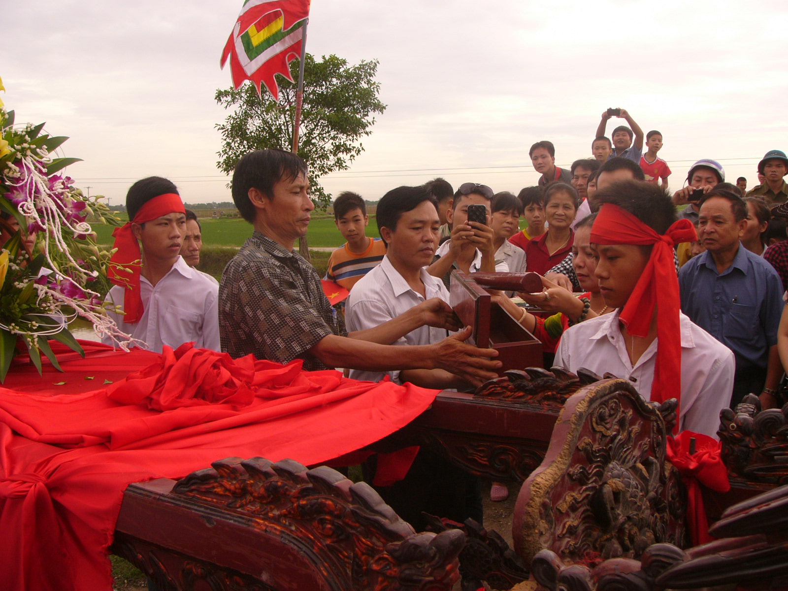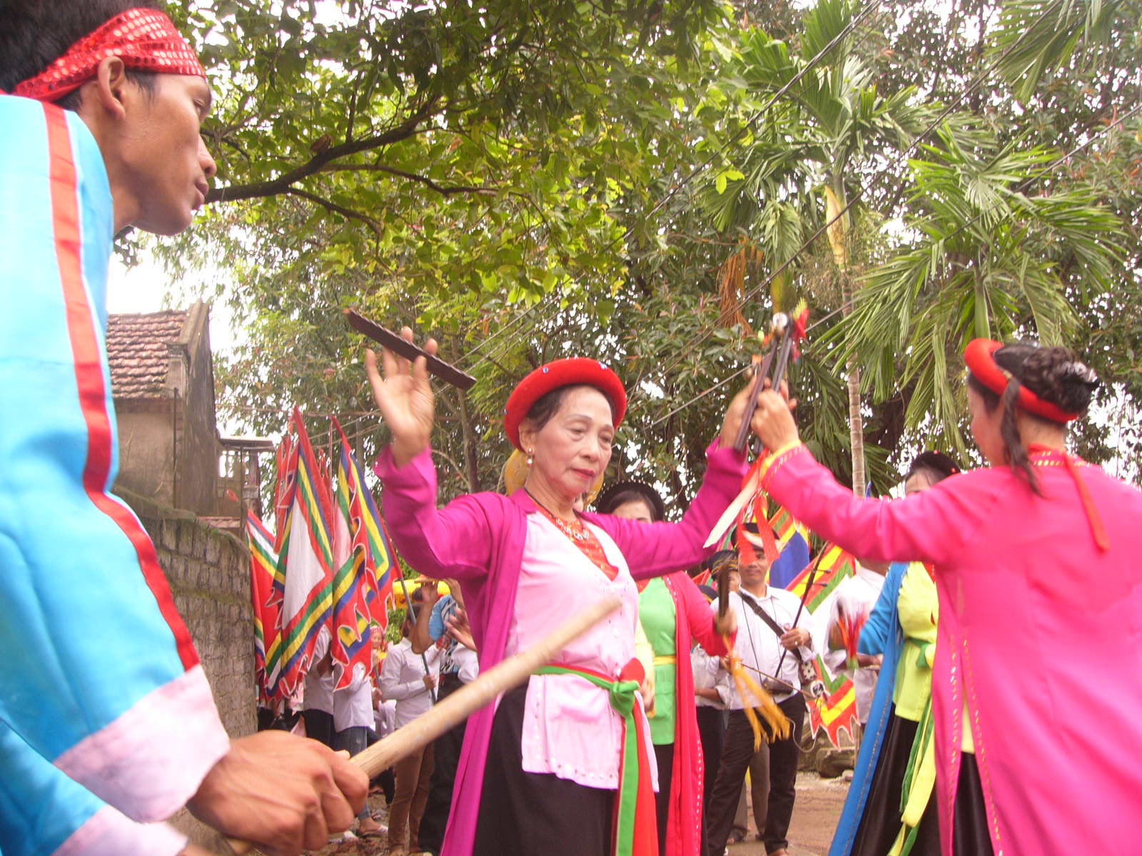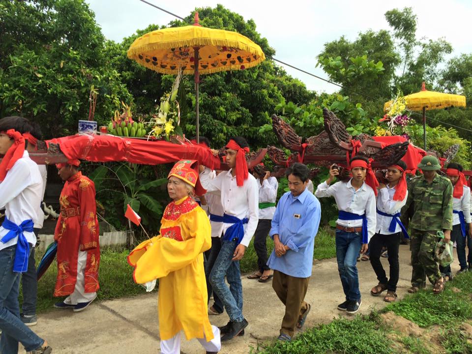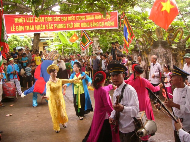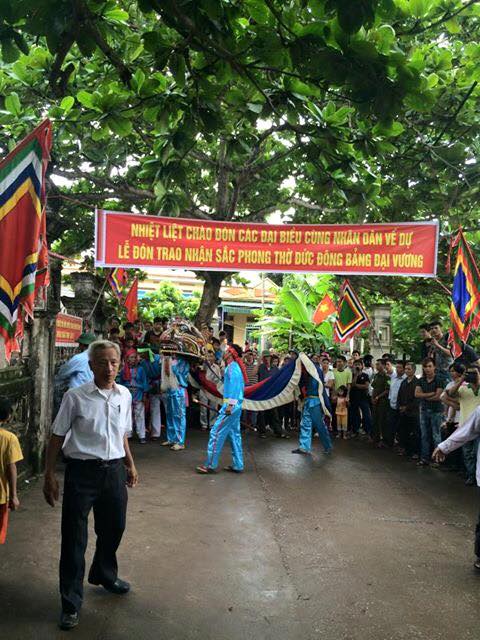Bà con và chính quyền thôn Tràng tổ chức đón rước Sắc Phong từ đầu làng.