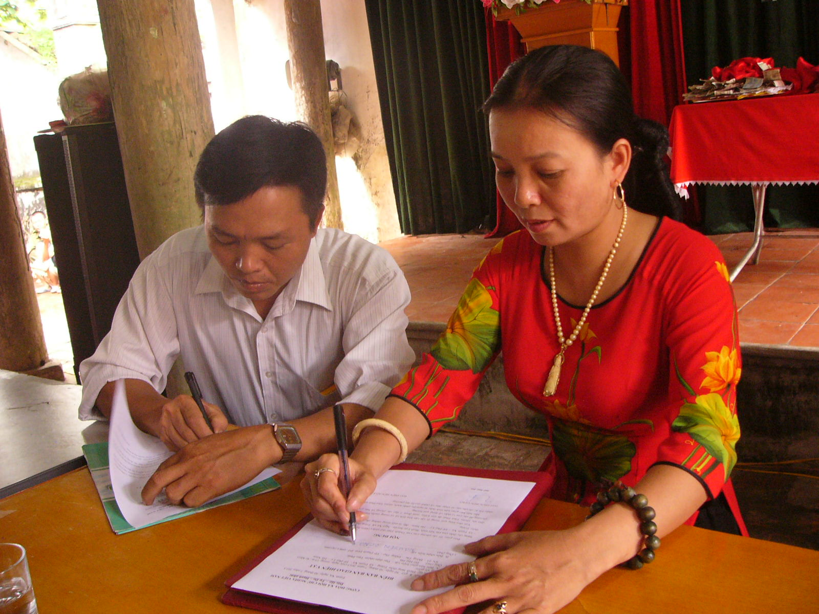 Trưởng thôn Tràng và đại diệm nhóm Tâm Phát ký biên bản bàn giao hiện vật