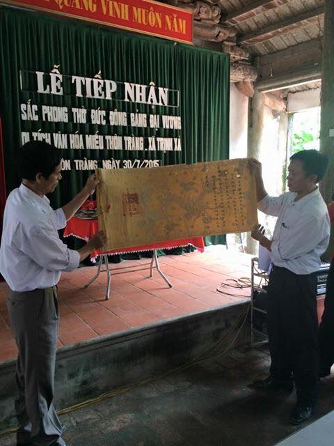 Lễ cung tiến sắc phong về đình làng thôn Tràng - Xã Trịnh Xá - TP Phủ Lý - tỉnh Hà Nam vào hồi 8 giờ sáng ngày Thứ 5 30/7/2015 (15/6/ Ất Mùi) được long trọng theo nghi thức của làng.